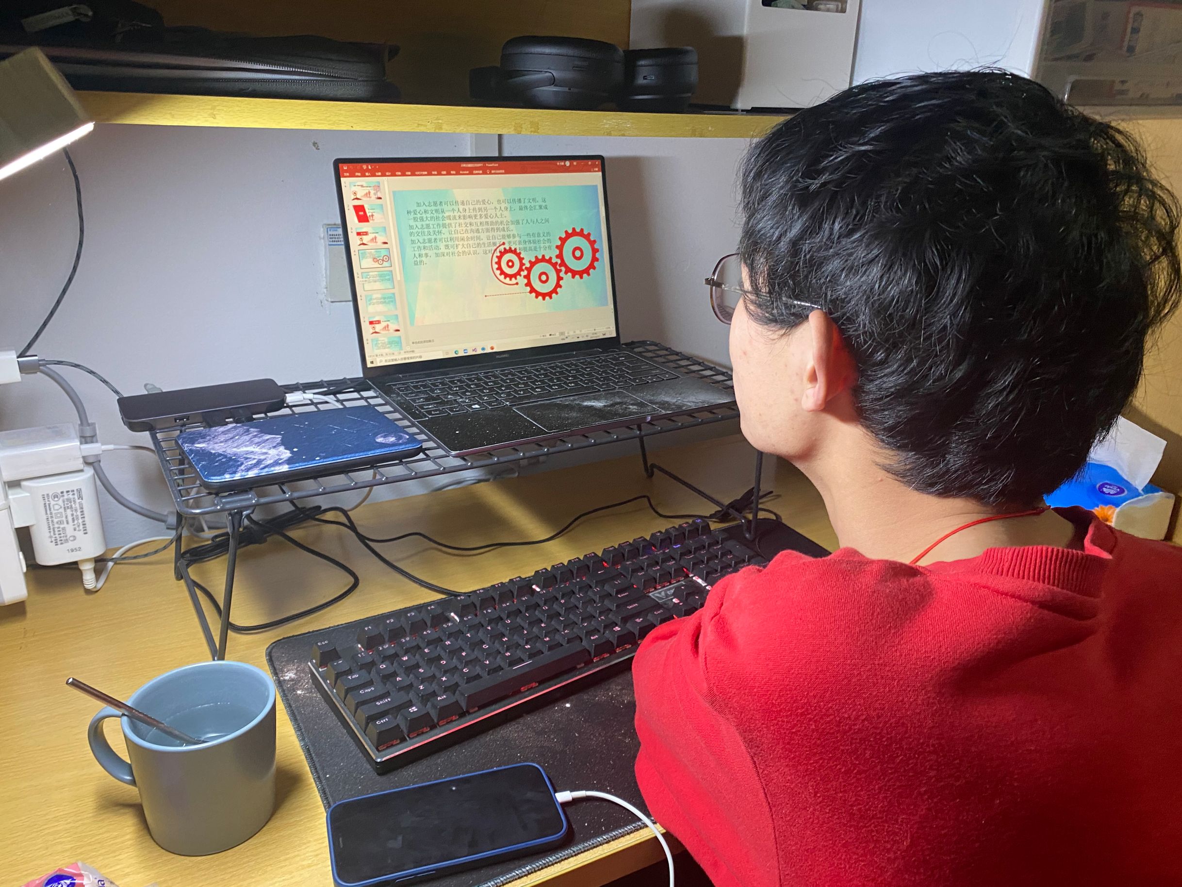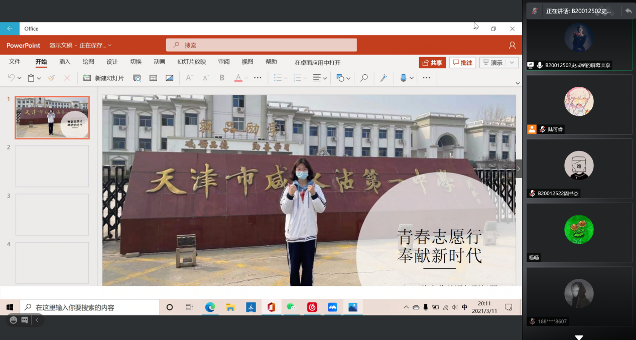 电子信息工程B200125班团支书陆可睿搜集了支部同学们参与志愿活动的照片及心得感悟并制作精美PPT,对在寒假期间参与家乡疫情防控志愿服务的同学事迹进行了整理和展示。同时陆可睿还向同学们讲述了有关志愿者的相关知识,鼓励支部成员通过积极参与志愿服务工作充实和提高自己。
