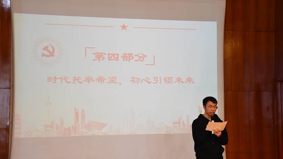 百年风雨路 奋进新征程。观影之后,同学们对党的光辉历史有了深刻的感悟。随后,组织委员谢沅均同学向大家介绍了团队寒假期间“邮你更精彩”新媒体设计大赛获奖PPT作品《百年恰是风华正茂》,谢沅均同学生动讲述建党以来的感人故事,回顾风雨历程,聚焦青春责任,致敬伟大祖国。