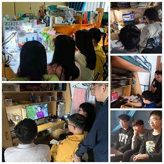 在本次活动中,各班班长和团支书积极组织同学们以大寝或小寝为单位,在宿舍内集体观看思政课线上直播。其目的是通过寝室集中观看的形式,让同学们在熟悉的环境中彼此交流学习感悟、畅所欲言。