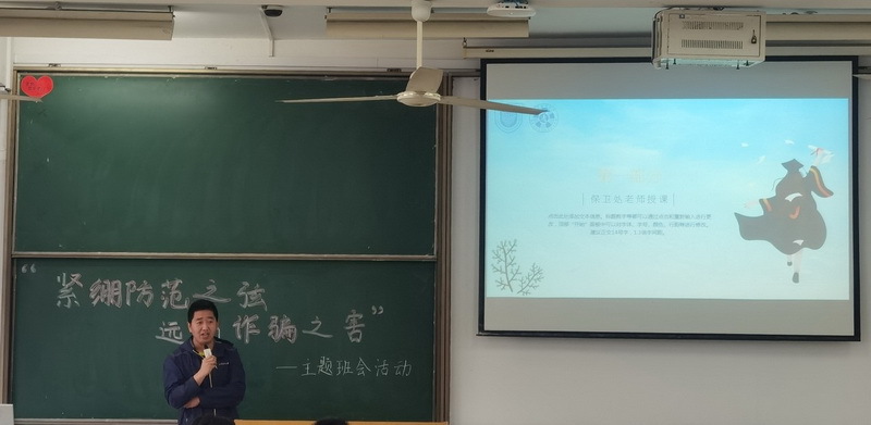 为提高学生安全意识,防范各类校园诈骗陷阱,切实保障学生在校生命财产安全和生活质量,通信与信息工程学院19级电子信息工程23-25班联合学校保卫处,于2021年4月23日上午10:00在教4-405组织开展了“紧绷防范之弦,远离诈骗之害”防范校园诈骗主题班会活动。