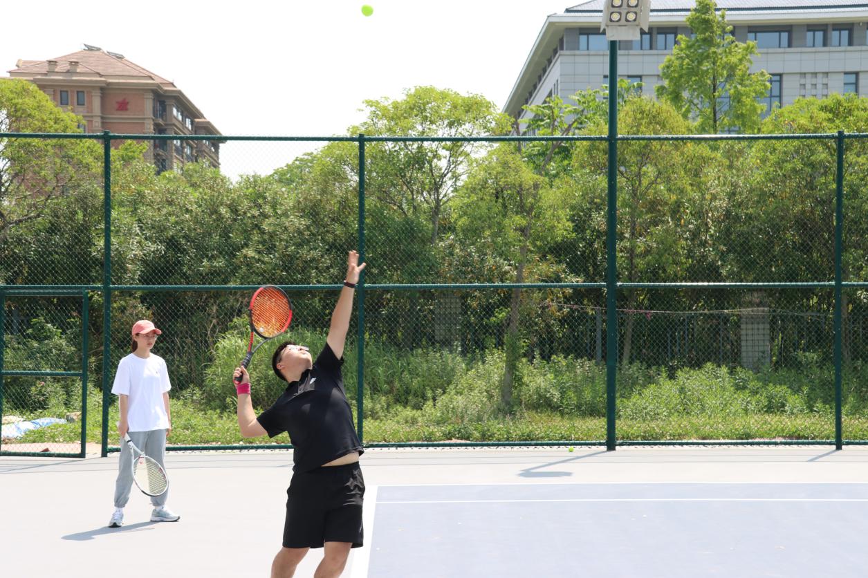 5月9日上午,我校在南网球场举办了校园网球赛。本届网球比赛主要分为双打挑战赛趣味赛,趣味赛包括下手发球,保龄网球,拍球接力跑,30秒颠球等项目。