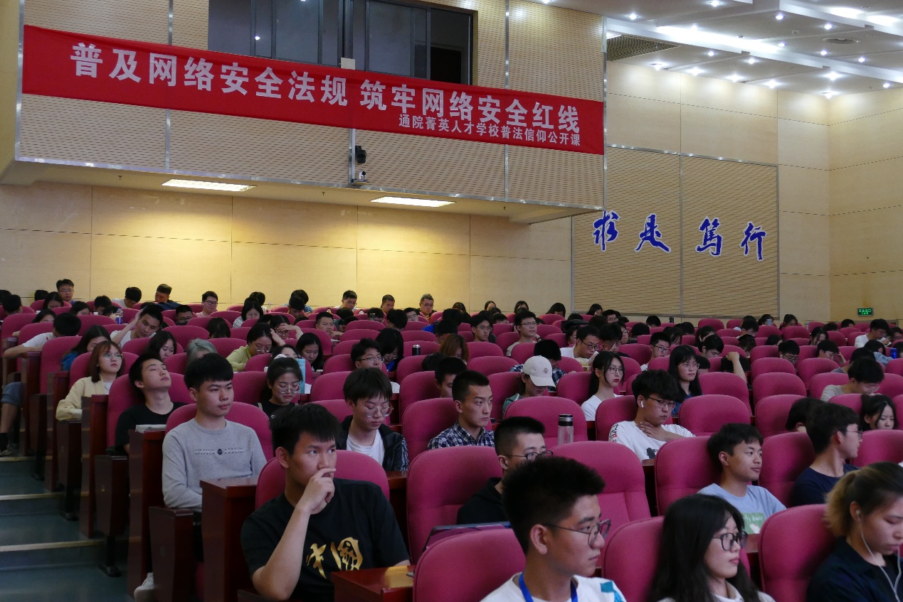 2021年5月13日12:30,通信与信息工程学院大学生菁英人才学校“信仰公开课”于仙林校区图书馆四楼报告厅成功开展。本次讲座邀请社会与人口学院王启迪副教授,以“普及网络安全法律,筑牢网络安全红线”为主题给同学们进行网络安全法律普及,丁杨老师携第89、90、91、92期菁英人才学院学员参加。