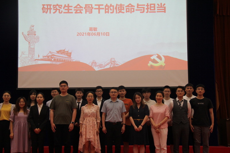 6月10日下午,我院党委副书记葛敏在三牌楼校区科学会堂二楼报告厅为研究生会干部讲授“研究生会骨干的使命与担当”思政课。参加本次讲座的有辅导员丁杨、余琪、许枝、王诚等老师及全体研究生会干部。