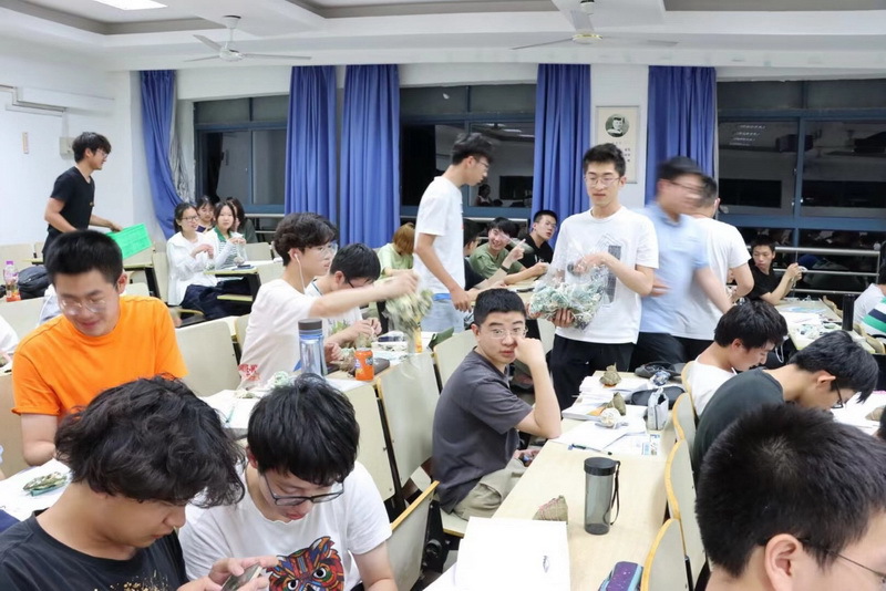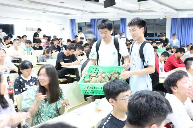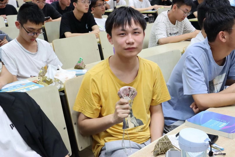 随后,各班班委将精心准备的绣香包和粽子分发给每位同学,同学们品尝着粽子,在温馨欢乐的气氛中讨论如何包粽子,相互分享家乡节日的习俗。辅导员闻友龙为同学送上温暖祝福,师生进行深入交流,辅导员老师为同学们的大学生生涯提出宝贵的建议,同学们表达了对学校和老师们的感谢之情。