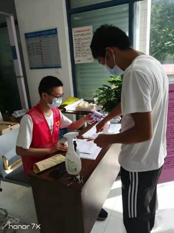 来自电子信息工程专业B200119团支部的封帅同学,家住陕西榆林,他积极参与到社区的疫情防控工作中去,为家乡的防疫工作做出自己的贡献。他的工作主要是对家中有中高风险地区返乡人员进行上门登记,查验健康码和行程码,测量体温,并提醒居民外出配戴好口罩。刚开始的时候,他十分紧张,但他遇到了一群志同道合的大学生们,通过分组合作提升了工作效率,他悬着的心也放松了下来。工作时的气温经常在30度以上,使他最难忘的是:一位阿姨担心他们天热中暑,主动送给他们矿泉水以示感谢。让他在炎热夏日中感受到一种守护者的责任感和自豪感!他说:“作为一名共青团员,这是我应该做的,疫情防控是一场没有硝烟的战争,让我们团结奋斗,同舟共济,共同构筑疫情防控的‘铜墙铁壁’,共同打赢这场疫情防控‘阻击战’。”他时刻牢记时代赋予青年学子的使命,奉献青春,为防疫工作添砖加瓦,将中华民族优秀的传统美德发扬光大。