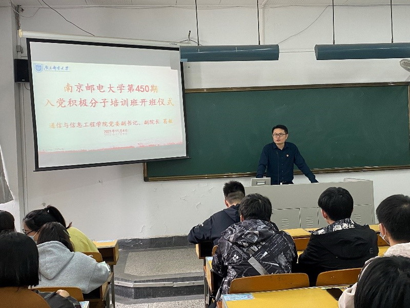 11月4日下午,通信与信息工程学院在三牌楼校区教西102举办了南京邮电大学第450期入党积极分子培训班开班仪式。学院党委副书记葛敏出席了本次活动并做了开班动员,学生党支部书记朱春、唐静月及第450期全体入党积极分子参加开班仪式。