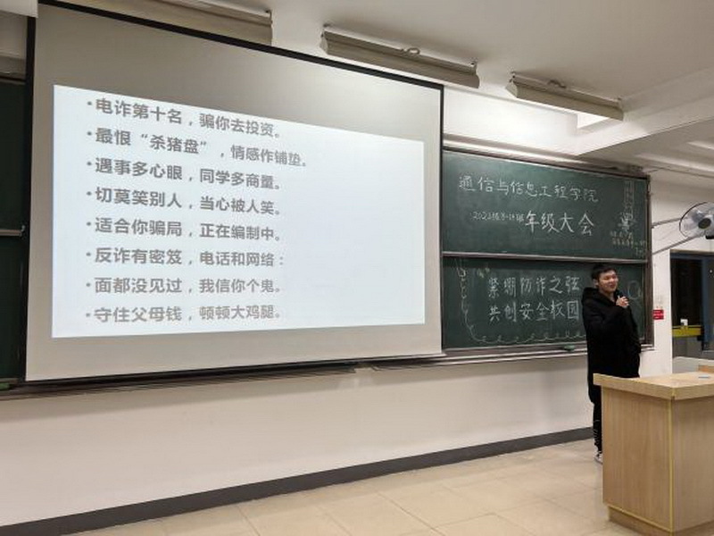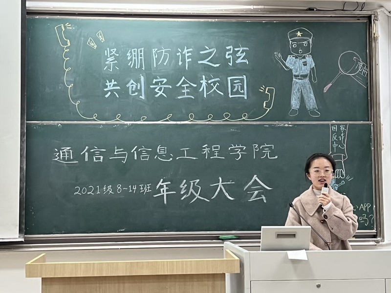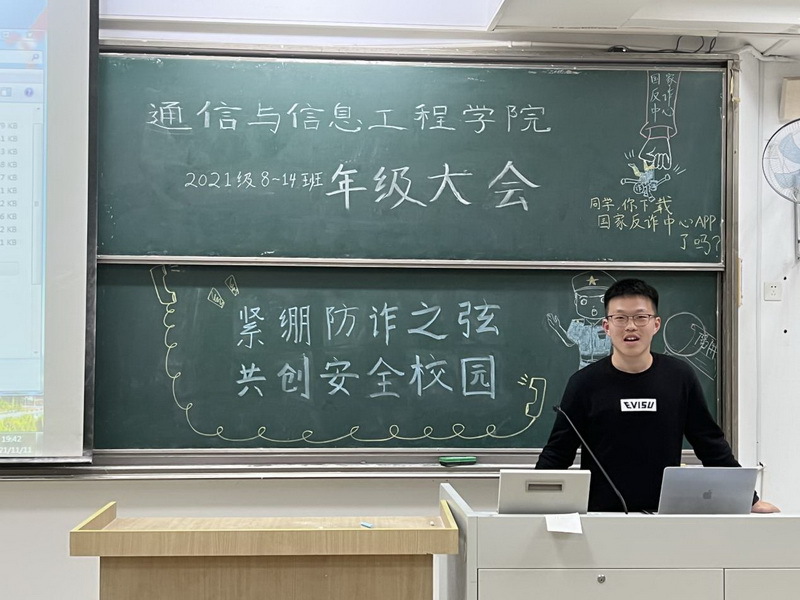 “安全防范·教育先行”,值南京邮电大学第八届“学生安全教育月”活动之际,通信与信息工程学院2021级8-14班全体同学在辅导员孙嘉宝老师和班级班委的组织带领下,积极参与“筑防诈之壁垒建安全之校园”安全教育活动,学习防范知识,紧绷防诈之弦,共创清朗文明校园。
