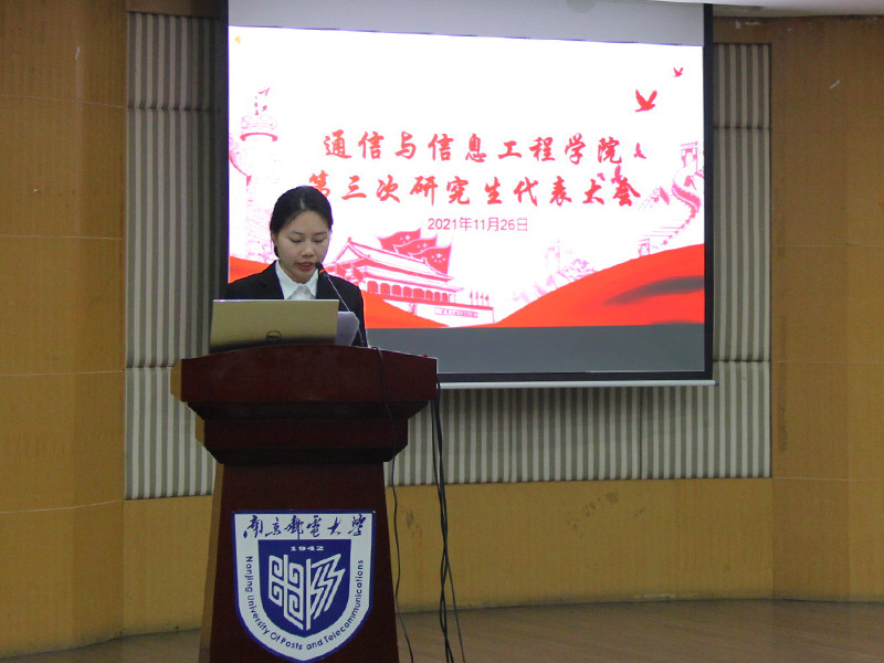 11月26日晚,通信与信息工程学院第三次研究生代表大会于三牌楼校区科技会堂一楼报告厅隆重召开。通信与信息工程学院党委副书记葛敏、辅导员老师许枝、王欢、张帅、余琪、丁杨,各班级研究生代表出席了本次大会。大会由通信与信息工程学院研究生会陆元昕主持。