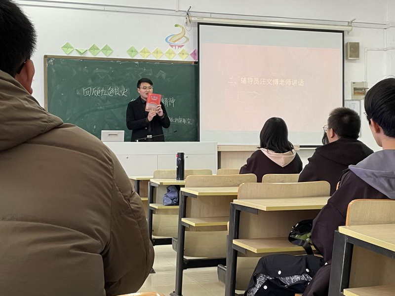 辅导员汪文博老师重点向同学们介绍了《红绿蓝——南邮的色彩》一书,系统地介绍了红绿蓝三种颜色所代表的南邮精神,讲述了他与南邮的深厚感情与心中的南邮印象,并激励同学们积极学习红色校史,了解南邮在战火中发展的深厚历史,不断厚植爱校、荣校之情。
