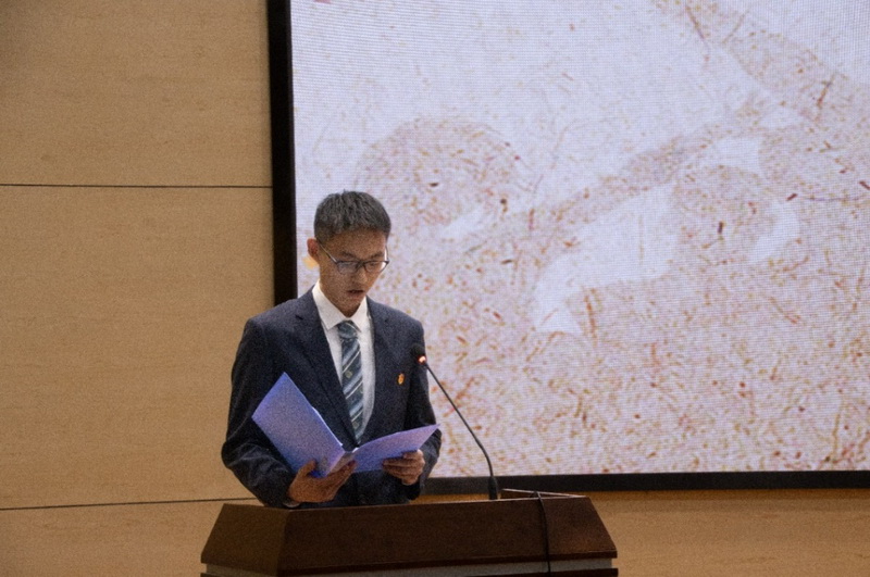 新的学年,通院学生会注入了新的血液。王秋石同学作为2021级学生会志愿者代表上台发言。他承诺,学生会成员将勇于承担责任,发展创新思维,加强集体交流沟通合作,争创佳绩,践行“为同学服务,为学校添彩”的使命。通院学生会各部门负责人代表依次上台发言,对上一年的工作进行了总结,并对新学年的计划作出汇报。之后,学院领导老师依次为学生会主席团成员、部门负责人、班级联络员以及志愿者代表颁发聘书。这份薄薄的聘书,承载着学生会成员的责任与担当,他们将不断努力,砥砺奋进以满意的答卷回馈不断鼓励、督促他们开拓进取的母校与老师。