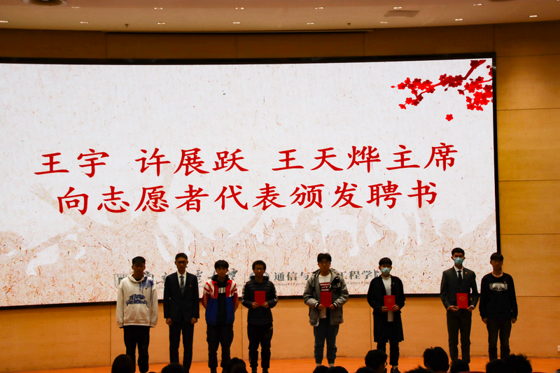 王宇、许展跃、王天烨向志愿者代表颁发聘书