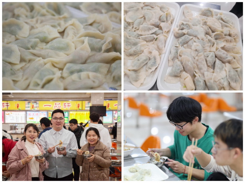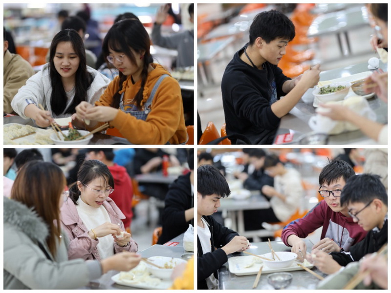 大约40分钟后,包饺子工作已经全部完成,不同风格的饺子在同一个盘中,可谓是不同地区包饺子艺术大赏。同学们把饺子送到食堂窗口,在阿姨的帮助下一盘盘煮好的饺子被送上餐桌,浓浓的饺子味香溢满屋,吃着自己亲手包出来的饺子,同学们的心中充满了喜悦,大家边吃边聊,气氛十分活跃,感受着合作的快乐和集体的温暖。