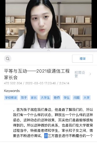 3月3日晚19点整,通信与信息工程学院2021级B210101-07班线上家长会如期举行。本次会议以“平等与互动”为主题,旨在与家长朋友共同探讨与大学生子女交流时如何做到平等与尊重、理解与信任,如何做到有效互动与良好沟通等内容。长达两个半小时的家校“云思政”,家长热情提问,线上气氛活跃,其乐融融。