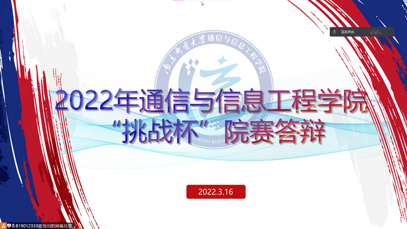 为深入学习领会习近平总书记关于“创新创业创造”重要论述的时代内涵,为南邮高质量发展培育青年后备人才,引导通院学子以优异创新成果在建团百年之际向党的二十大献礼,推荐优秀项目参与南京邮电大学2022年 “挑战杯”大学生创业计划竞赛,通信与信息工程学院于3月16日下午13:30,举办2022年“挑战杯”大学生创业计划竞赛院级选拔赛。受疫情影响,本次院级选拔赛采取线上答辩方式,选拔赛特邀教育科学与技术学院党委副书记乔祖琴担任嘉宾,学院党委副书记葛敏,实验教学中心副主任戴海鸿,电子设计竞赛资深指导老师曾桂根、林建中,分团委书记丁杨莅临本次选拔赛并给予指导。