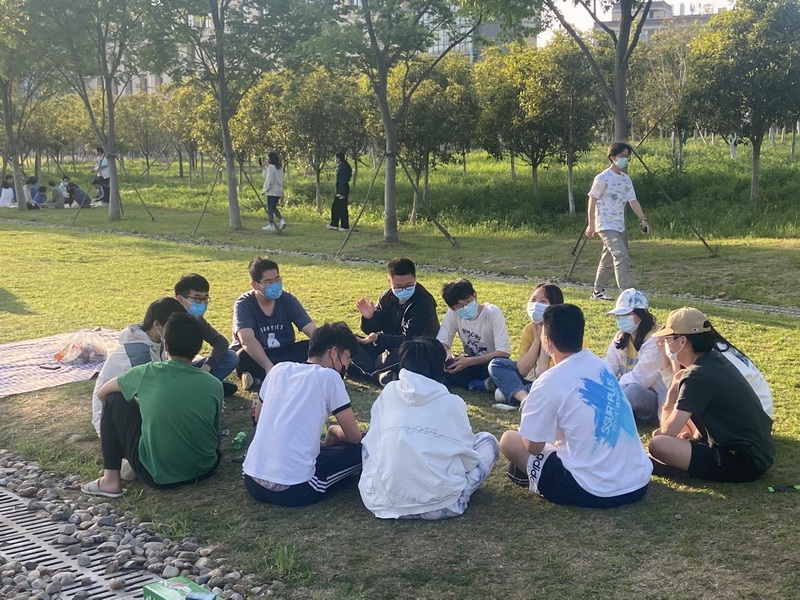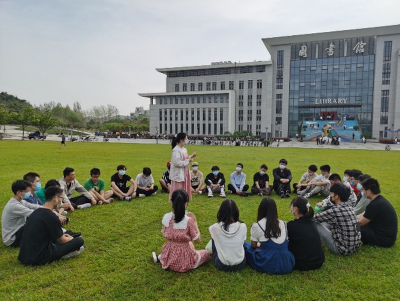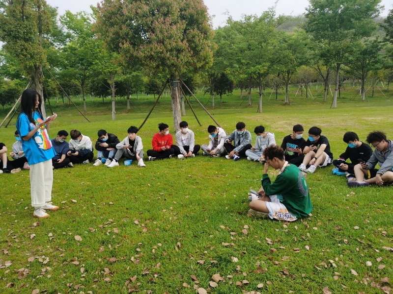 这次主题团日活动不同以往在教室宣讲的形式,各班同学都不约而同地选择集合在图书馆前大草坪,在盎然春意中感悟青年的蓬勃朝气。