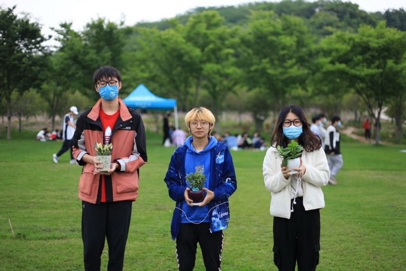 获奖同学领取绿色盆栽