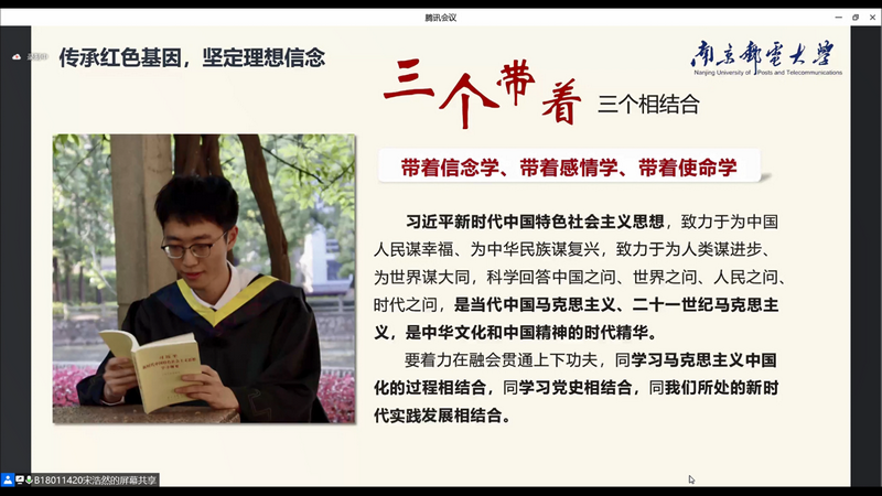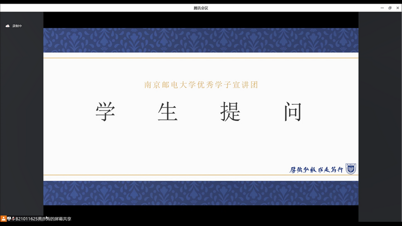 为喜迎党的二十大胜利召开,进一步发挥我校优秀学子的榜样引领作用,献礼八十周年校庆,5月23日晚,学校第三届优秀学子宣讲团走进通信与信息工程学院专场在腾讯会议云端开讲。此次宣讲会由通信与信息工程学院2019级研究生丁奥和2018级本科生宋浩然主讲,学院300余名学生及21级本科生辅导员周宇参加了宣讲会。