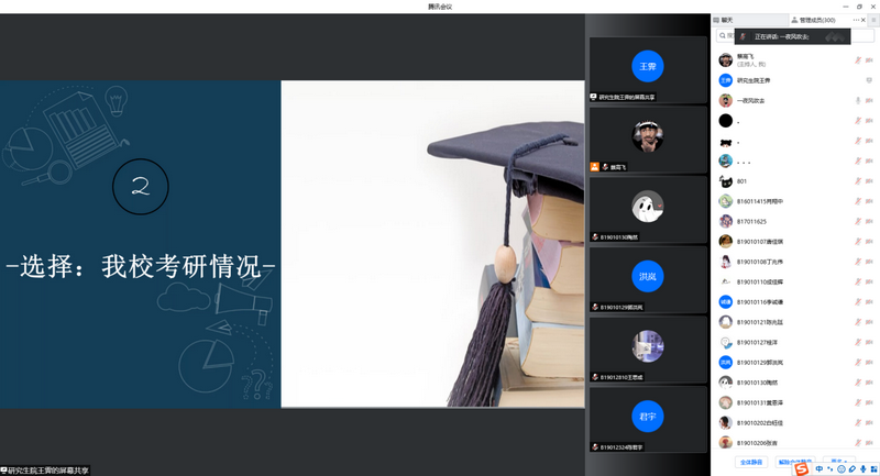 首先,王霁主任为我院2019级考研学生做了考研形势和招生情况分析,南邮作为本校考生的优先院校选择,有就业水平好、就业质量高、科技硬核等方面的优势。另外,随着考研人数的递增,王霁主任也提醒同学们要根据备考情况确定目标院校,正确认识,理性选择。