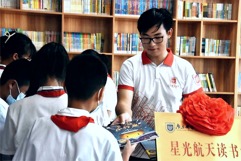 “航天类图书和航天器模型,贴近学校的教学需求,更为直接为学生带来航空航天方面知识的普及,如果‘星光航天读书角’能成功调动起各个年级学生的探索热情,在他们心中埋下航天的种子,一起铸就航天梦,那我们本次活动的初心就达到了。”当看到学生在收到航天科普图书时欢快又渴望的眼神时,实践团指导老师周宇说道。