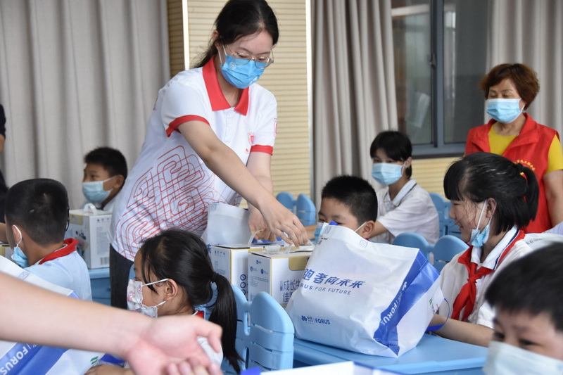 实践团成员为仪征市城南都会小学困境学生分发助学大礼包
