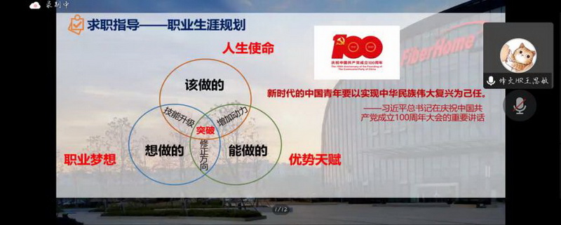 接着,王思敏主管对于同学们如何应对笔试面试,如何提升自己的显性、潜在素质做出了指导,以增强同学们的就业技能。王思敏主管引导同学们树立正确的就业观,挖掘自身优势,明确就业目标,以及与公司岗位需求的匹配,避免盲目从众。最后,王思敏主管与参会同学进行交流互动,就同学们提出的问题逐一做出解答。