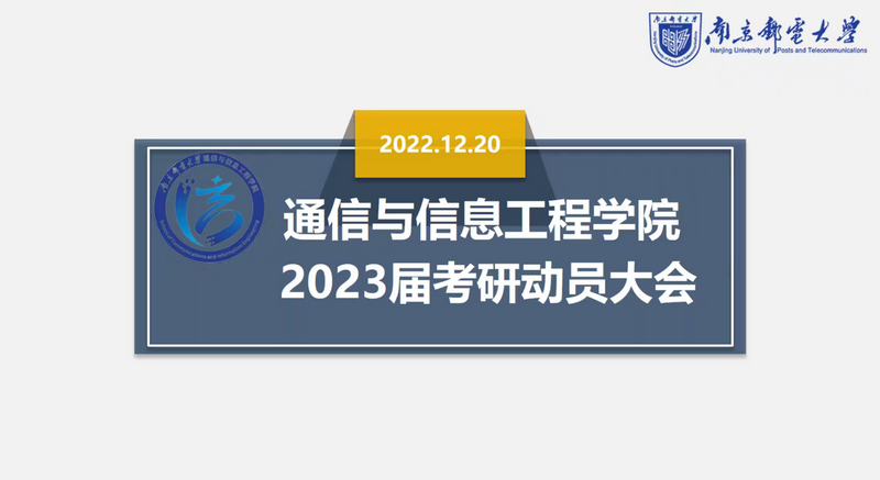 考研将至,为缓解同学们的考研压力和焦虑,鼓舞考研士气,2022年12月20日晚5时,通信与信息工程学院2019级本科生研究生考试考前动员会于线上成功召开。学院党委书记徐雷、院长周亮、副书记王晶、2019级本科生辅导员丁杨、蔡高飞、王琛、齐小凤、赵厚出席本次大会,为即将考研的同学送上鼓励和祝福,会议由王晶副书记主持。