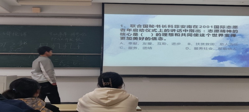 B220111团支部则以知识竞赛形式弘扬“奉献、有爱、互助、进步”的志愿服务精神,激发同学们对志愿服务知识的兴趣,鼓励同学们积极参加志愿服务活动。其次,团支部以身边人的志愿服务事迹为例,分享了他们作为志愿者的真实感悟。活动末尾,同学们表示必将身体力行,弘扬志愿服务精神,参加志愿服务活动,将个人的涓滴之力汇聚成磅礴伟力,矢志不渝为志愿服务事业做出贡献。