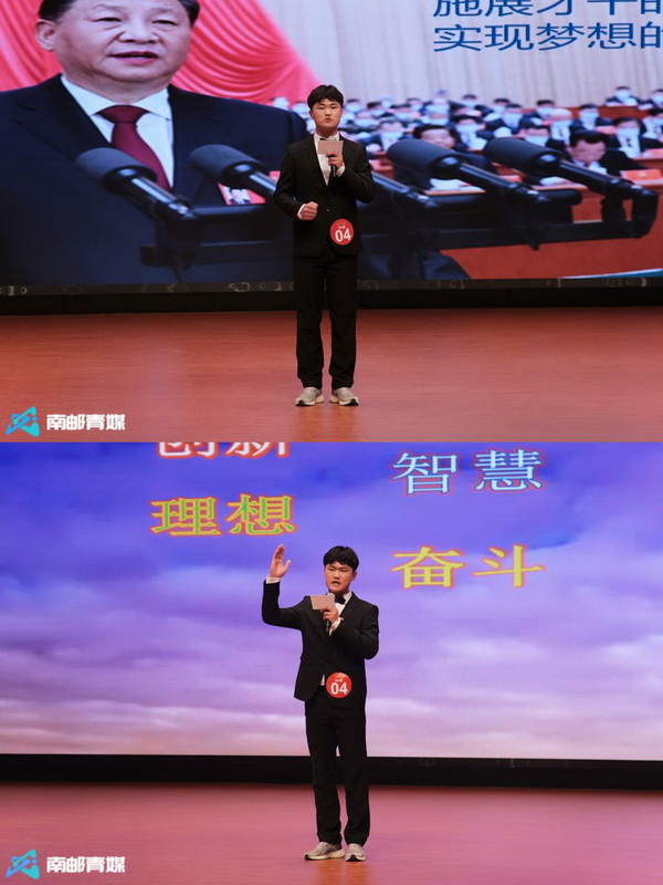曹宏伟同学演讲的主题是《青春礼赞二十大,强国有我新征程》。他在备赛过程中,深受二十大精神和南邮精神的启迪与鼓舞,他认为,要将理论学习付诸于实践,要将实现个人价值和服务社会结合起来,才能真正贯彻落实党的二十大精神,树立好正确的世界观、人生观与价值观。他坚信,新时代青年要在新征程上践行“强国有我”的青春誓言。