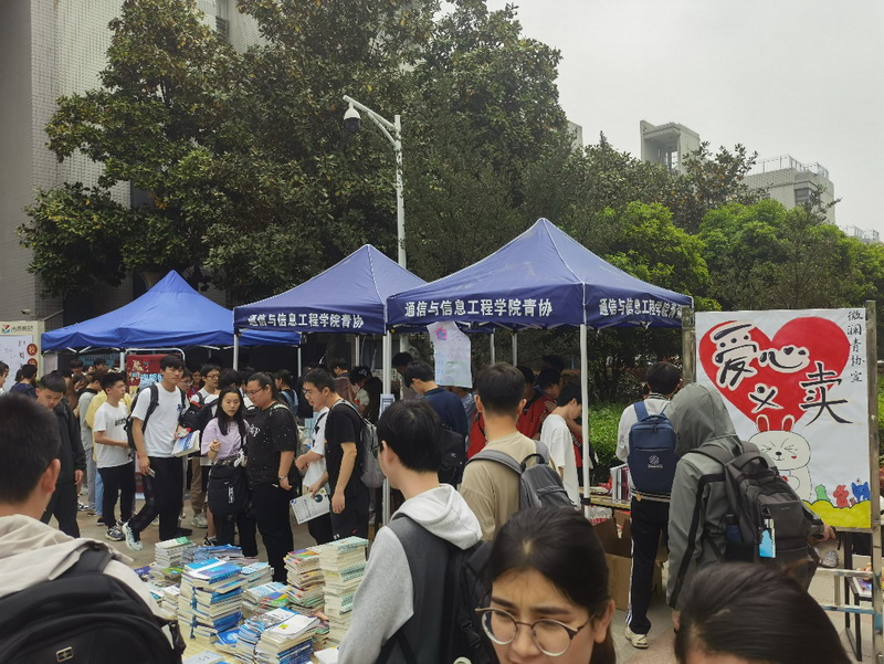 活动前期,志愿者们前往各栋宿舍楼收集物品,并向各位同学介绍、宣传本次活动的内容和意义。活动得到了同学们的大力支持,纷纷将自己不需要的专业书籍、玩偶、摆件等闲置用品捐赠出来,我们的志愿者们“满载而归”。 收集好捐赠品后,志愿者们加紧对售卖物品做分类、整理和定价。