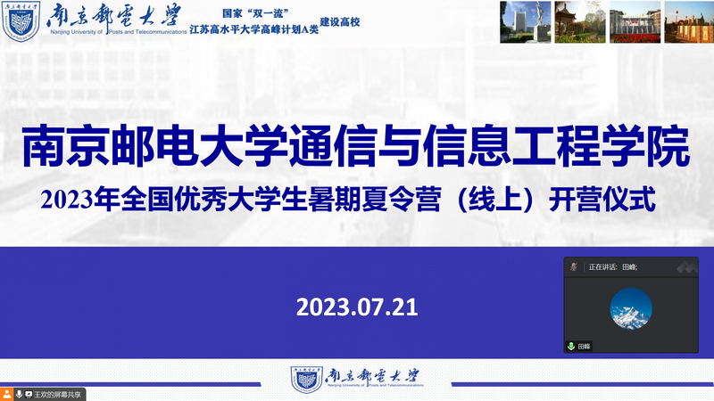 为吸引和选拔对信息与通信工程学科有一定科研兴趣和发展潜力的全国高校优秀大学生进入南京邮电大学通信与信息工程学院攻读硕士学位研究生,7月21日,学院举办了南京邮电大学通信与信息工程学院2023年全国优秀大学生暑期夏令营(线上)。