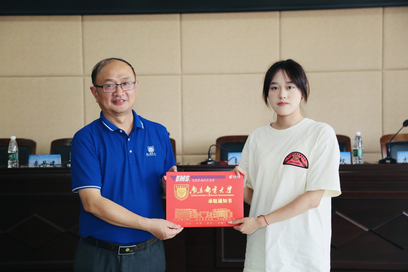 王友国副校长向三所学校在今年高考中取得的优异成绩表示祝贺,对考取南邮的优秀学子表示热烈的欢迎。王校长简要介绍了我校的发展历程、办学特色、科研成果、杰出校友、学科竞赛成果等内容,他勉励同学们不忘初心,砥砺前行,进入大学后树立远大理想,为实现中华民族伟大复兴的中国梦不懈奋斗。王友国副校长向三所中学校长一一赠送喜报,为每一位新“柚子”颁发录取通知书并合影留念。