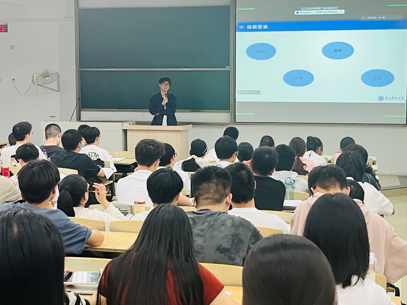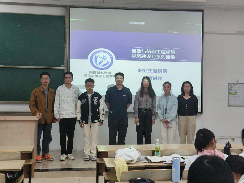 为了让同学们可以更直观、全面地了解未来规划及就业,本次讲座邀请了我院优秀应届毕业生和研究生,用他们亲身的经历为同学们进行保研、考研、就业等方面的分享。“不在失败时羡慕别人,不在低谷时否定自己。”秋招已签约中兴通讯股份有限公司南京分公司的张宏宇同学,以自身的大学经历和求职经验出发,详细介绍了不同岗位未来的发展路径与方向,他建议同学们要提早了解岗位特点和招考条件,提前做好职位与个人要素匹配,系统考虑,稳步推进,持续优化。