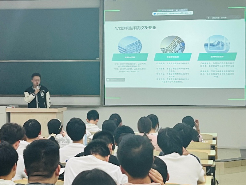随后,已推免至北京大学的童骁同学简述了学院保研方案细则,帮助同学们对保研有了更全面的了解和更清晰的认知。上岸南邮的李沁欣同学从院校及专业选择、信息收集、阶段安排、实战备考等内容,为有意向考研同学提供了方向,最后李沁欣同学还强调要准确匹配自身实际,不能盲目选取目标院校。