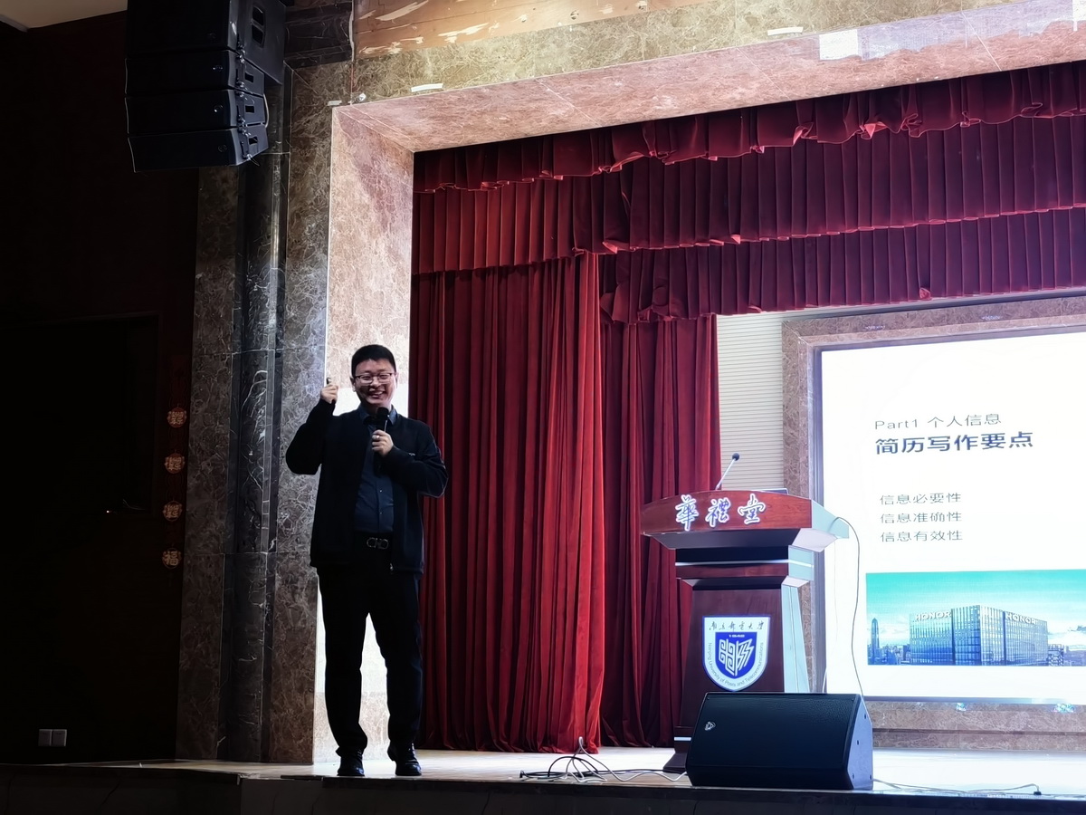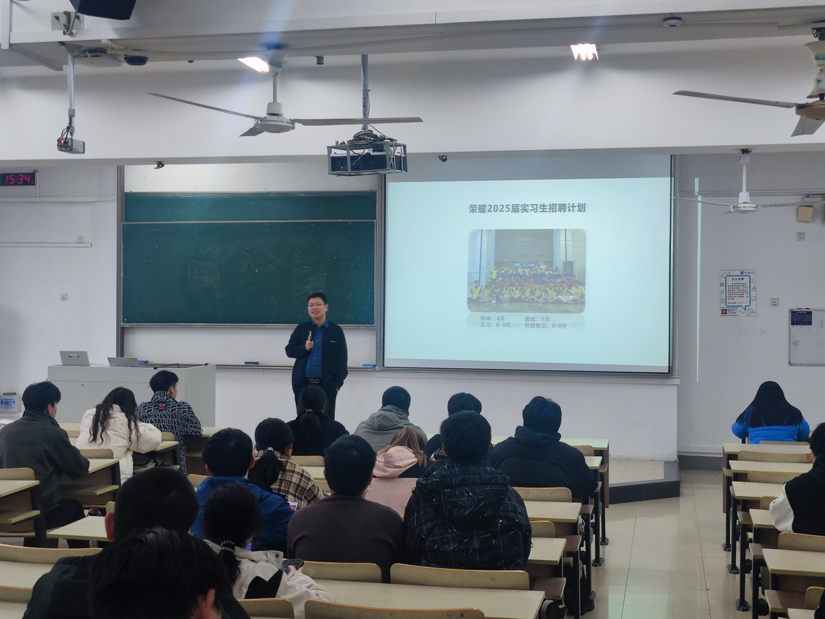 王坤经理介绍了荣耀的发展前景以及荣耀2025届实习生招聘计划。他勉励同学们把握机会,找到适合自己的理想职业。讲座结束后,王坤经理为前来咨询的同学提供简历修改的意见并开展交流。