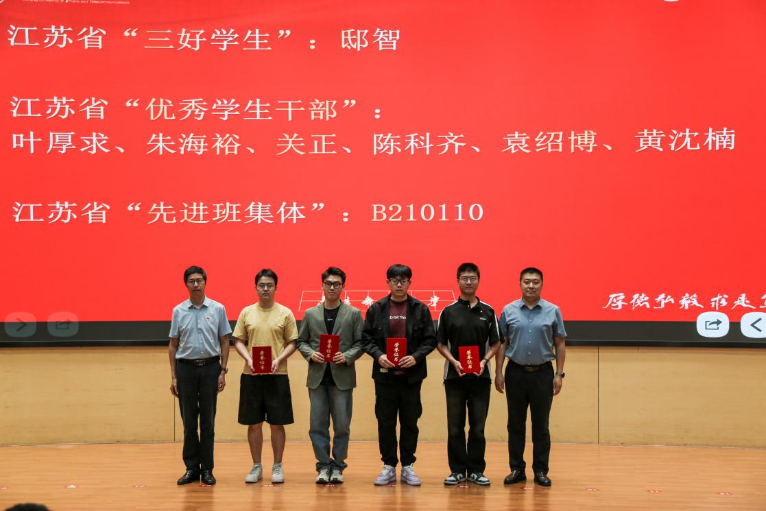 随后,我校学生工作处处长李晓华,学院党委书记徐雷为江苏省优秀学生、江苏省“两红两优”获奖代表颁奖。我校党委研究生工作部部长何海洋、“同勉电信优秀学子奖励金”捐赠者吴永宁先生为同勉电信优秀学子奖励金获得者颁奖。