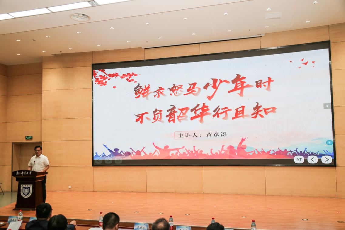 随后,导师代表胡海峰教授上台发言。他表示本科生导师制的实施,打破了传统教学模式中师生之间相对单一的课堂交流模式,增强了师生之间的交流合作。胡教授强调,科研不是斤斤计较投入产出的活动,也不只是个人简历中的用于炫耀的经历,科研更是一种探索,是不断追问“为什么”的过程,是不断尝试、不断失败、最终又不断突破自我的成长之路。希望同学们珍惜这个难得的机会,主动与导师沟通交流,积极参加科研活动,培养自己的创新能力和实践能力。