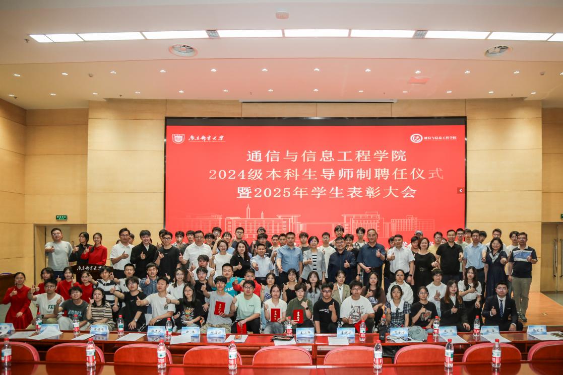 2025年5月26日下午,我校通信与信息工程学院在仙林校区图书馆报告厅举行2024级本科生导师制聘任仪式暨2025年学生表彰大会。出席本次活动的有我校党委常委、副校长姜小舜,原南京水利科学研究院高级工程师、《中国海洋工程》(英文版)编辑部主任吴永宁,江苏源本科技集团董事长张福德,南京艾瑞集团董事长杨利霞,江苏源本科技集团总经理唐佩,南京艾瑞集团HR主管何湘男,我校学生工作处处长李晓华,党委研究生工作部部长何海洋,教务处副处长臧庆,招生就业处副处长赵伟,通信与信息工程学院党委书记徐雷,学院党委副书记、院长邹玉龙,学院党委副书记、副院长王小露,学院党委委员、副院长施政,学院教授胡海峰,学院党委委员、办公室主任闫向龙,学院分团委书记丁杨,通信与信息工程学院2024级本科生导师、全体辅导员与学生代表。现场气氛热烈,师生齐聚一堂,在悠扬激昂的校歌中,大会拉开帷幕。会议由学院党委副书记王小露主持。