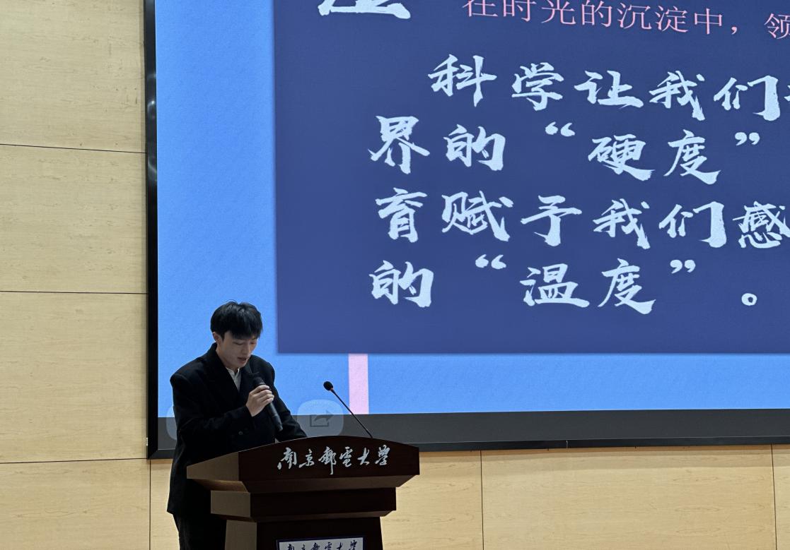 国家奖学金、十大学术之星获得者2022级通信与信息系统博士研究生王林宁以“方向、选择、超越”为主线,讲述了自己从LED器件研究到空天地海全光通信网络构建的科研历程。他表示希望优秀的同学们不论在今后工作还是学习中都能以方向为灯塔,彰显邮子担当;以选择为基石,铸就邮子风采;以超越为使命,争当科技报国主力军!