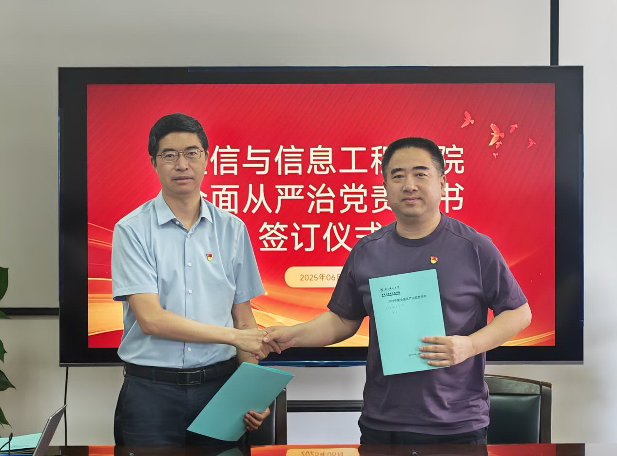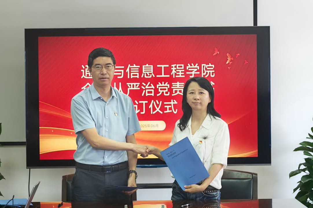 6月24日,通信与信息工程学院党委在科研楼208会议室举行2025年度全面从严治党、廉政责任书签订仪式。学院领导班子成员、科职干部、各党支部书记以及系、所(院)、中心负责人参加了会议。会议由学院党委副书记王小露主持。